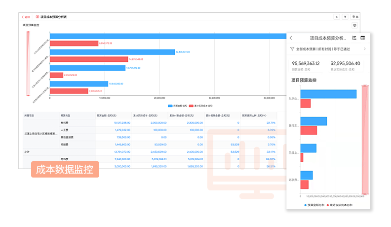 成本數據監控:使成本計劃的執行始終處于預算監控之下,防止成本失控