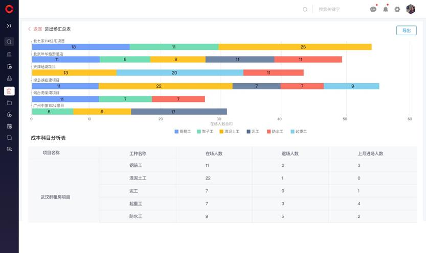勞務成本管理:相關負責人可在系統中錄入勞務預算數據。施工過程中,通過軟件及時上報實際勞務成本,將預算和實際成本進行對比,發生超出預算風險時,系統可以自動觸發預警提醒。管理層可以通過紅圈軟件實時了解單項目的實際勞務成本,各項支出明細可查,為結算提供依據。